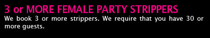 PARTY CONDUCT DISCLAIMER FOR ALL INVITED PARTY GUESTS: All customers who book with us are to maintain a safe environment at all times for our dancers. At any time that the dancers feel harrased or threatened. They have the right to leave without any money for fees returned.